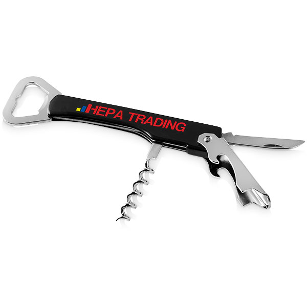 Bottle opener, corkscrew and foil cutter