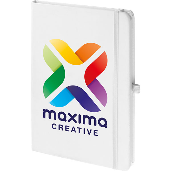 Elastic closure band, ribbon marker, pen loop and expandable back inside pocket